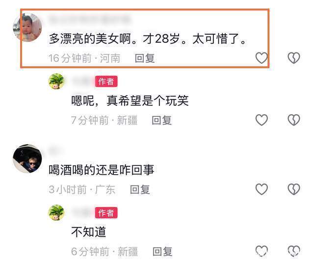 生活富足且交友众多,奈何情绪始终不在正轨,只能说红颜薄命,但“薄命”的背后与生活的不节制有着很大的关系,但凡少喝点,也不至于这般,但凡身边有个知冷知热的人,也不至于这样。